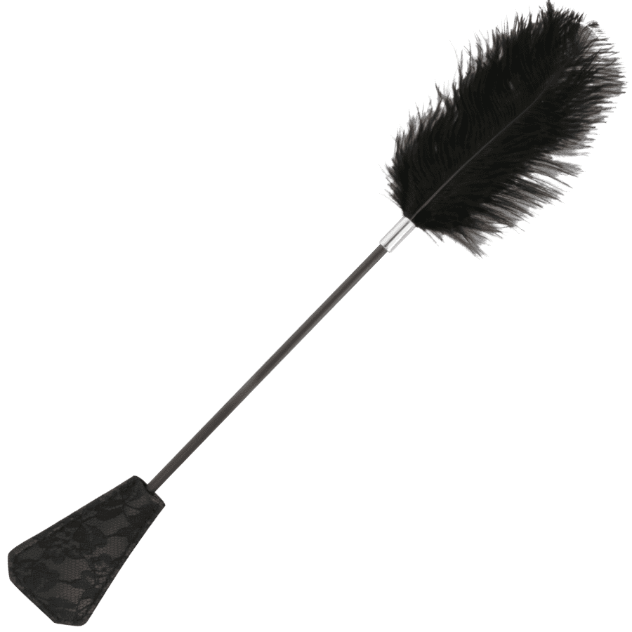 Entre douceur sensuelle et discipline ludique, ce stick 2-en-1 est une invitation à explorer toutes les nuances du jeu érotique. D’un côté, une plume noire voluptueuse pour chatouiller et éveiller chaque centimètre de peau. De l’autre, un paddle en dentelle noire pour de légers coups, fermes mais élégants.